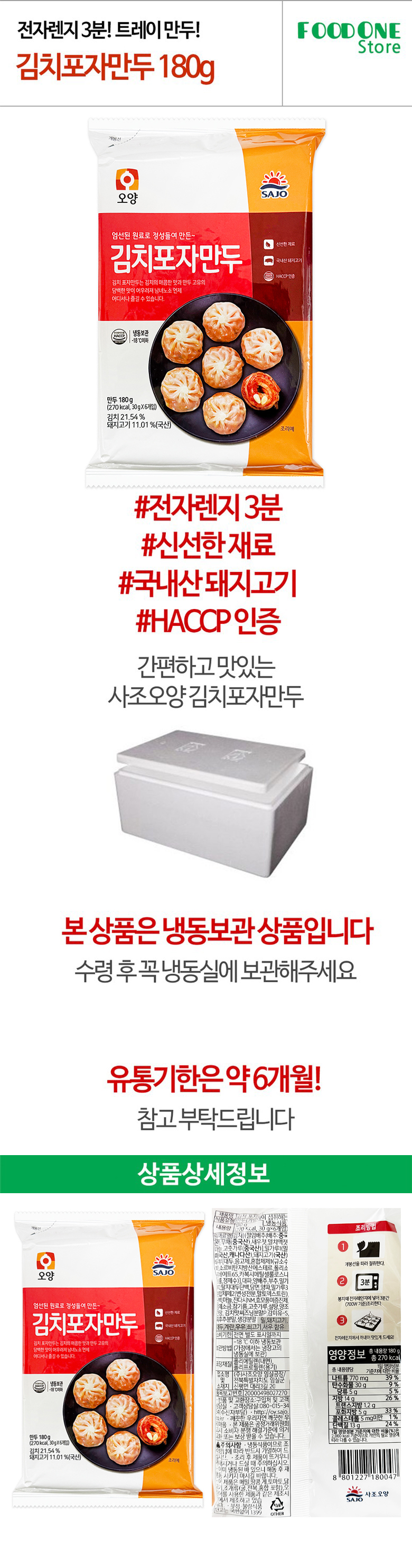 [냉동] 사조오양 김치 포자만두 (6구) 180g